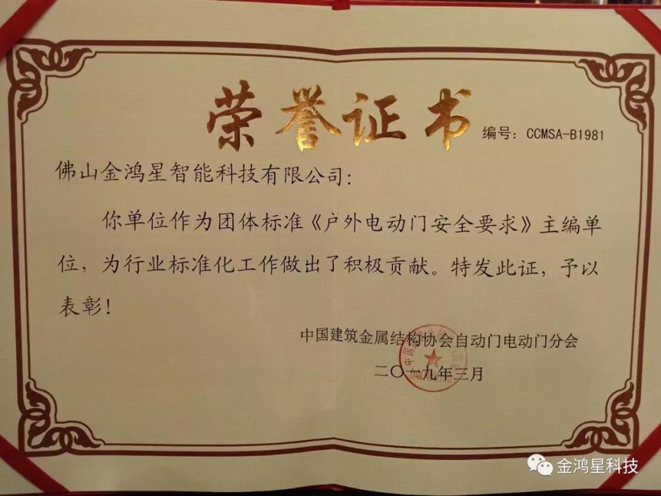 本屆大會以“誠信、創(chuàng)新、品質(zhì)、融合”為主題,潘冠軍會長對2018年自動門電動門行業(yè)做出了工作報告,并提出2019年自動門電動門工作重點及行業(yè)發(fā)展方向,大會對2018年全國優(yōu)秀單位及個人進行了嘉獎,并表彰了團體標準參編單位。金鴻星智能科技有限公司榮獲“2018年全國自動門電動門行業(yè)金盾獎”“2018年金盾獎先進單位”“戶外電動門安全要求主編單位”榮譽。