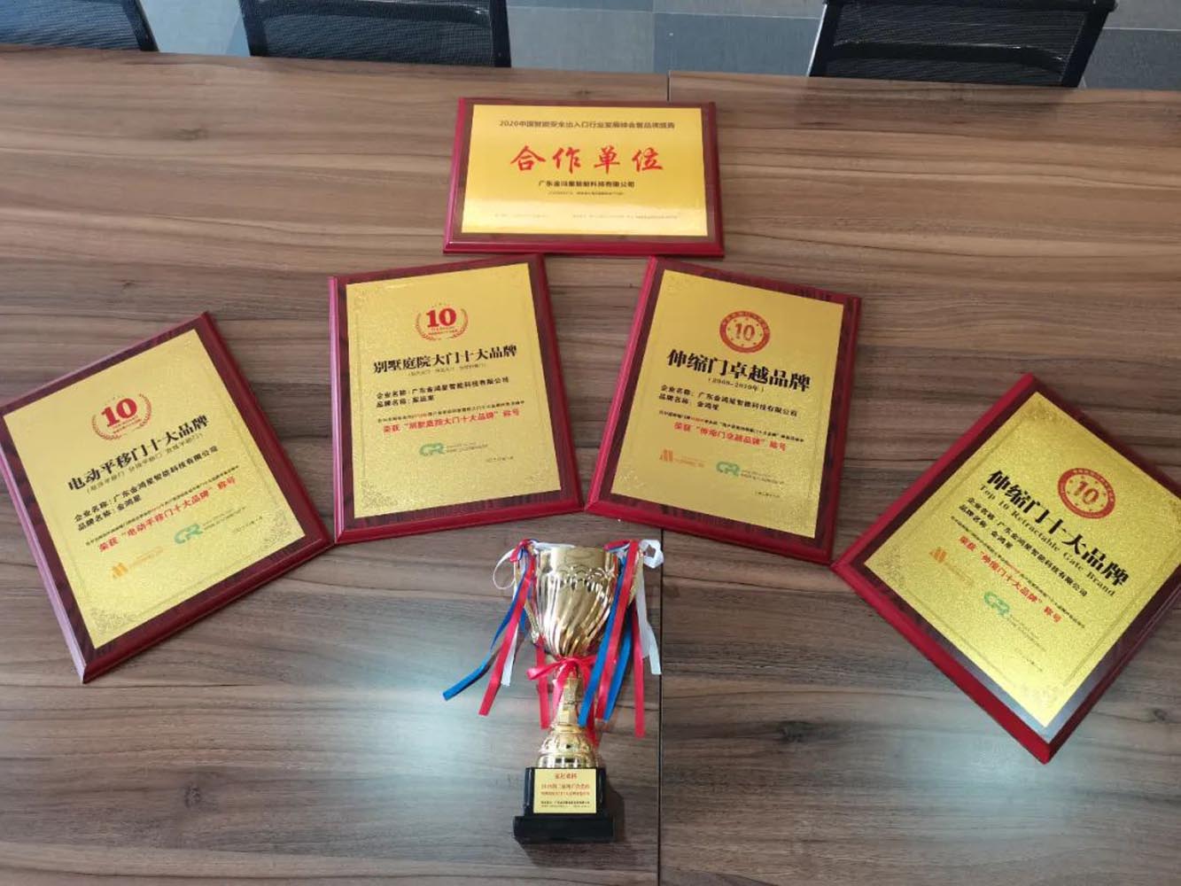 峰會(huì)上,廣東金鴻星智能科技有限公司榮獲中出網(wǎng)-出入口設(shè)備行業(yè)門戶合作單位。在中國伸縮門網(wǎng)舉辦的評選活動(dòng)中,我公司一舉斬獲“伸縮門卓越品牌”、“伸縮門十大品牌”、“電動(dòng)平移門十大品牌”“別墅庭院門十大品牌”等獎(jiǎng)項(xiàng),載譽(yù)而歸。