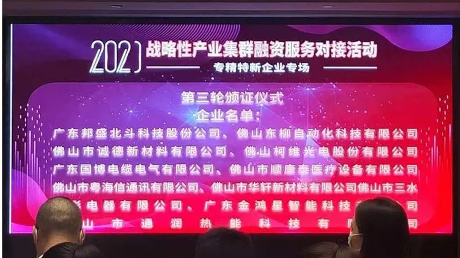 2021年5月26日,金鴻星智能科技有限公司榮獲佛山市工業(yè)和信息化局頒發(fā)的“專精特新”企業(yè)榮譽證書。這是上級政府部門對金鴻星科技在市場經(jīng)營管理以及產(chǎn)品科技創(chuàng)新等方面實力的再次肯定。