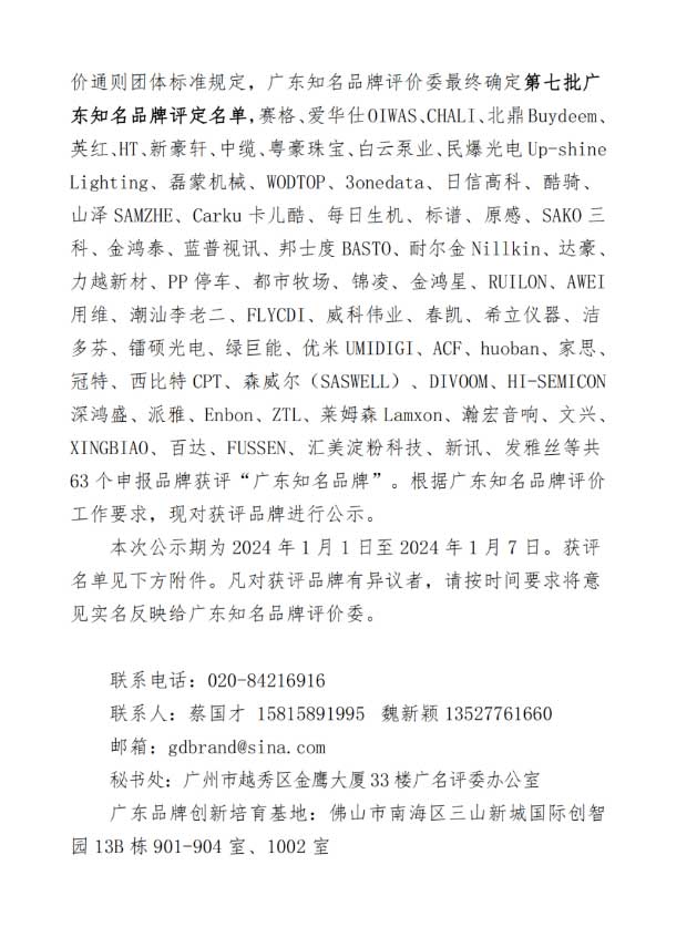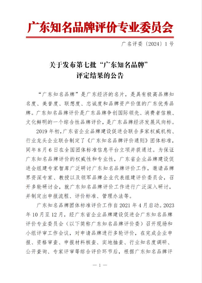 本次評(píng)選,是在完成企業(yè)申報(bào)、資格審查、申報(bào)材料核查、實(shí)地抽查、行業(yè)知名度調(diào)研、公開(kāi)查詢(xún)、專(zhuān)家評(píng)審等綜合評(píng)價(jià)環(huán)節(jié)后,根據(jù)《廣東知名品牌評(píng)價(jià)通則》團(tuán)體標(biāo)準(zhǔn)規(guī)定,廣東知名品牌評(píng)價(jià)專(zhuān)業(yè)委員會(huì)最終審核認(rèn)定廣東金鴻星智能科持有限公司為第七批“廣東知名品牌”, 此次榮獲“廣東知名品牌”,是對(duì)廣東金鴻星智能科技有限公司的創(chuàng)造力、創(chuàng)新力、產(chǎn)品力、貢獻(xiàn)力、品牌影響力的綜合肯定,也是對(duì)廣東金鴻星智能科技有限公司作為戶(hù)外電動(dòng)門(mén)行業(yè)引領(lǐng)者的示范帶動(dòng)作用的高度肯定。