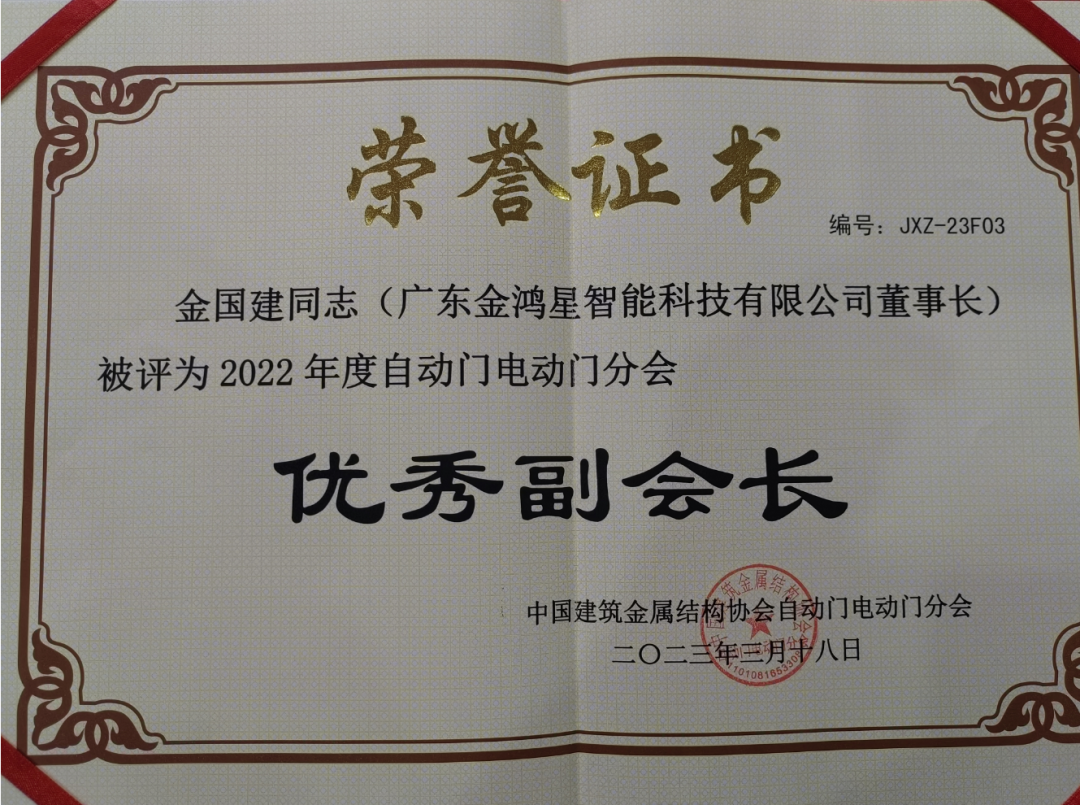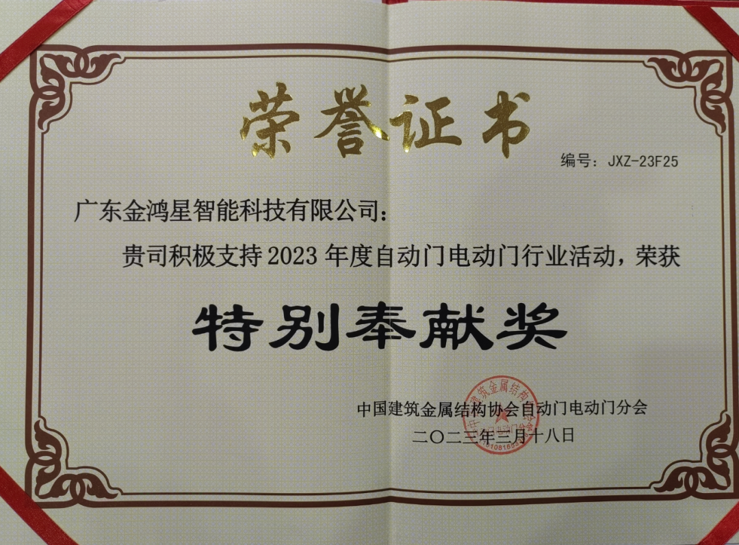 每一次榮耀加冕,每一個(gè)輝煌瞬間,都是金鴻星奮發(fā)向上的無(wú)盡動(dòng)力,金鴻星將繼續(xù)堅(jiān)守匠心精神,以更高品質(zhì)和產(chǎn)品及更優(yōu)質(zhì)的服務(wù),推動(dòng)電動(dòng)門行業(yè)的高質(zhì)量發(fā)展。