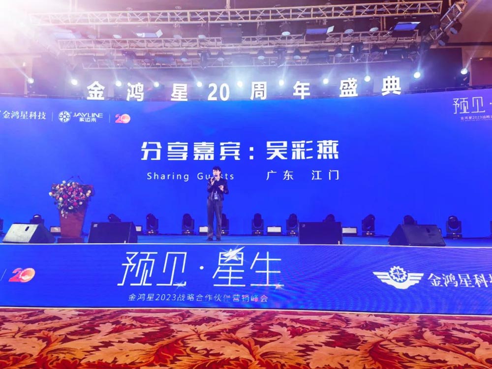 會(huì)議伊始,金鴻星聯(lián)合創(chuàng)始人黃笑群女士為此次會(huì)議發(fā)表致辭,金鴻星已經(jīng)走過(guò)了二十載,取得了一定的成績(jī)與榮譽(yù),凝聚了越來(lái)越多的經(jīng)銷(xiāo)商伙伴,從陌生到熟悉,一路同行,攻克了無(wú)數(shù)的難關(guān),也共證了彼此的成長(zhǎng)。2023年是金鴻星探尋新的增長(zhǎng)之路,以初心育匠心、以匠心守初心.