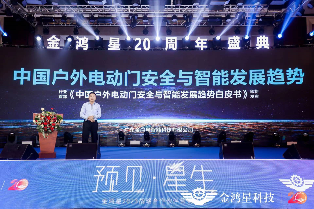 金鴻星董事長(zhǎng)金國(guó)建先生為我們發(fā)表《中國(guó)戶外電動(dòng)門(mén)安全與智能發(fā)展趨勢(shì)》的主題分享,并于率先在行業(yè)關(guān)于24V安全電壓驅(qū)動(dòng)以及智能控制系統(tǒng)的全系列標(biāo)配啟動(dòng)儀式,同時(shí)邀約中國(guó)建筑金屬結(jié)構(gòu)協(xié)會(huì)潘冠軍副秘書(shū)長(zhǎng)、中國(guó)建筑金屬結(jié)構(gòu)協(xié)會(huì)自動(dòng)門(mén)電動(dòng)門(mén)分會(huì)戴建國(guó)副會(huì)長(zhǎng)、中出網(wǎng)CEO李明發(fā)先生以及客戶代表出席啟動(dòng)儀式。